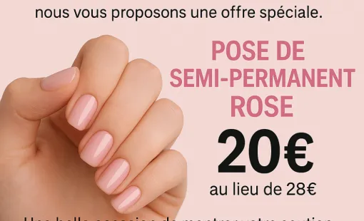 Pose de semi-permanent rose à seulement 20€ au lieu de 28€ !